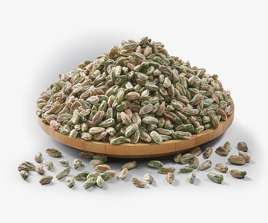 Fıstık tanelerinin henüz tam olgunluğa erişmediği, dış kabuk renginin açık yeşil renkte olduğu evrede toplanarak dış kabuğunun kavlatılması, kurutulması ve sert kabuğundan ayırmak üzere kırım makinalarından geçerek boz fıstık içini elde ettiğimiz üründür. Ürünün özelliği yoğun fıstık tadı ve kokusu içermesi ve renginin koyu yeşil olmasıdır.